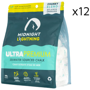 This bag contains 275g of Midnight Lightning ultra-pure, high-performance powder chalk and is made from the mineral contents of seawater. No destructive mining here! This chalk is produced using natural solar evaporation and is packaged in a plant-based, carbon neutral* 🌱 package, which is also fully recyclable! ♻️!